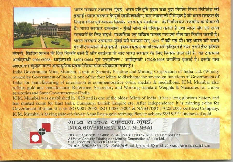 - 2006 Silver Proof Set of Mahatma Basaveshwara of Mumbai Mint.