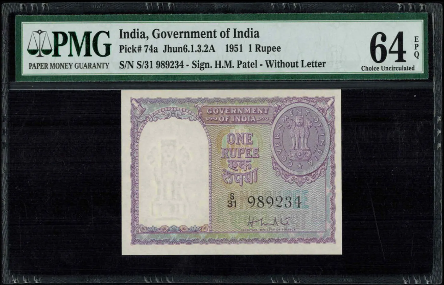 The 1951 one rupee note signed by HM Patel comes in two main prefix series: (PQRSTUVWXYZ) and (ABCDEFG). The former can be worth up to INR 1000, while the latter can fetch up to INR 1200. The different prefixes add an element of variability and excitement for collectors, making these notes a unique part of India’s numismatic landscape.