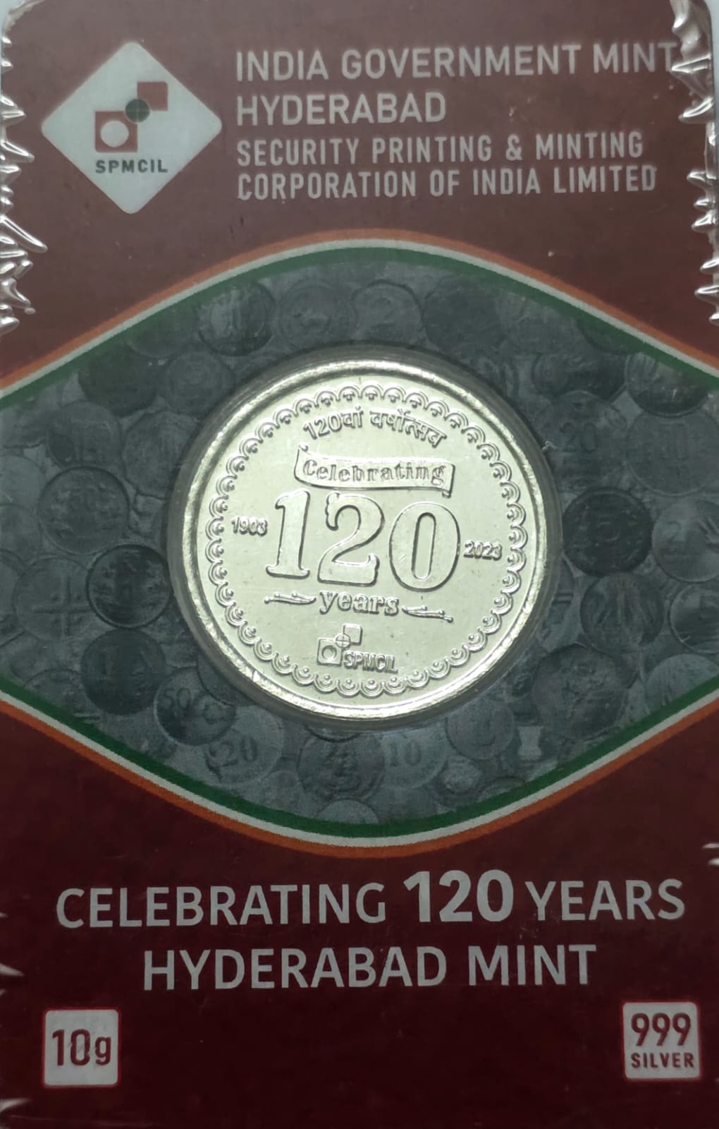 10 Gms 999 Pure Silver 120 Years Coin India Government Mint Hyderabad Edition rare