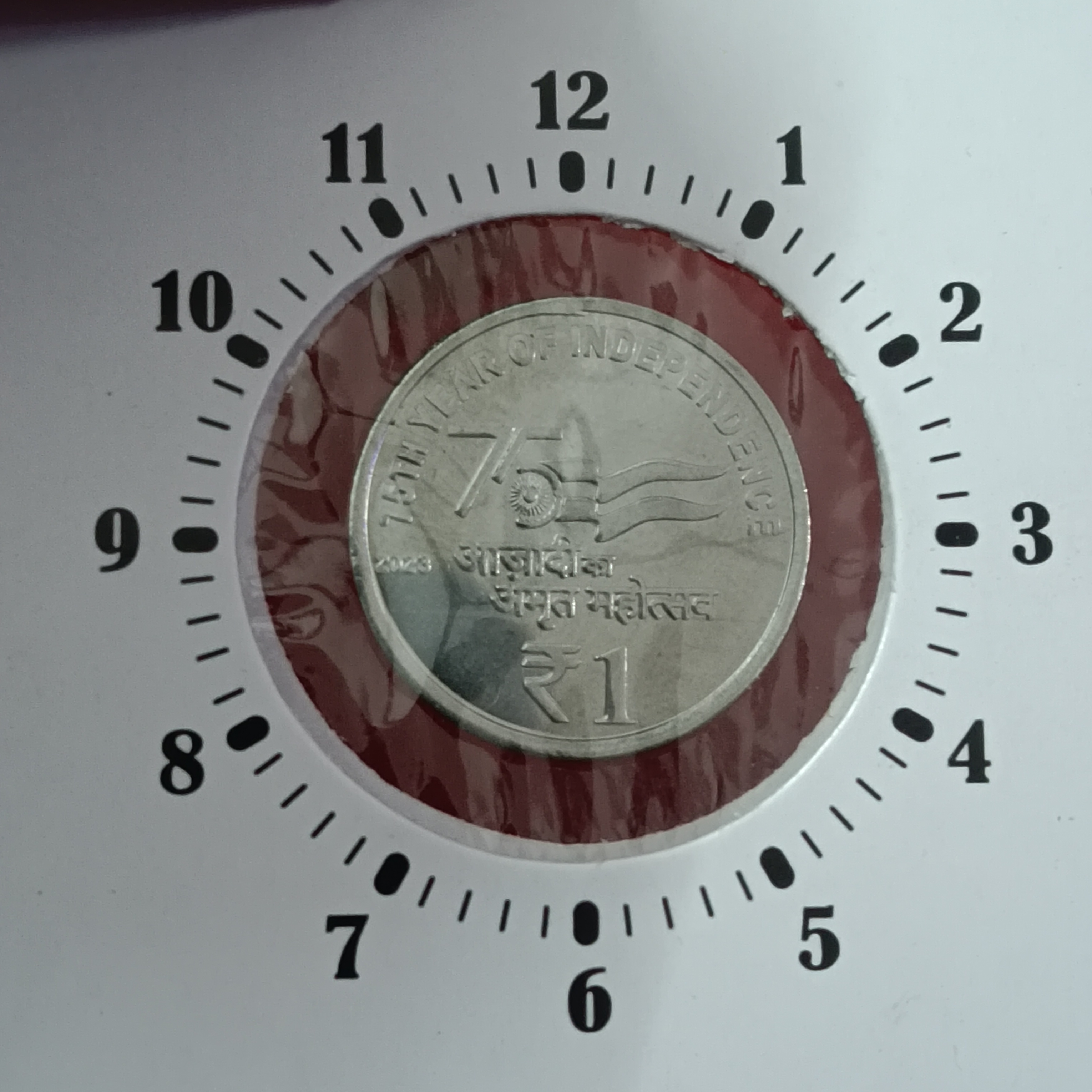 One Rs Akam 11″ o Clock Error Coin Shifted Year 2023 Calcutta Mint UNC Condition