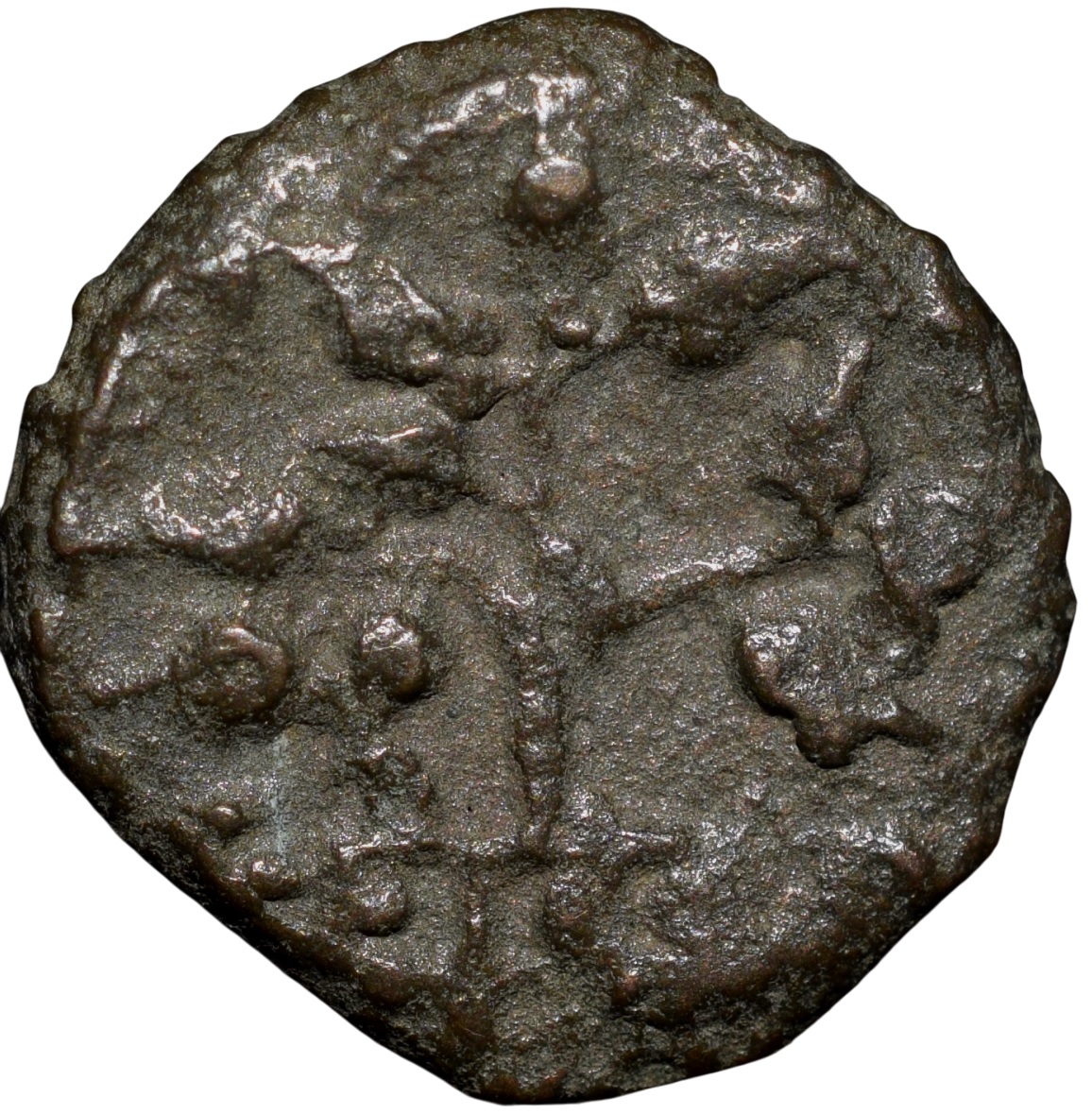 Cast Copper Kakani coin of Sunga Kingdom from MP Region 2nd Cen. BC Hollow Cross/Tree Railing