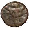 Transport yourself back in time with this exquisite collectible from the Sunga Kingdom in the 2nd century BC. This cast copper Kakani of multiple symbols hails from the Kausambhi Region, featuring an obverse design of an elephant to the left and a wheel on top, while the reverse showcases a wheel and tree within a railing. Weighing 0.54 grams and measuring 9.34 mm, this rare fractional denomination piece is in about fine condition. The historical significance of this coin, along with its unique design and scarcity, makes it a prized addition to any ancient coin enthusiast’s collection. Embrace a piece of history with this remarkable artifact.