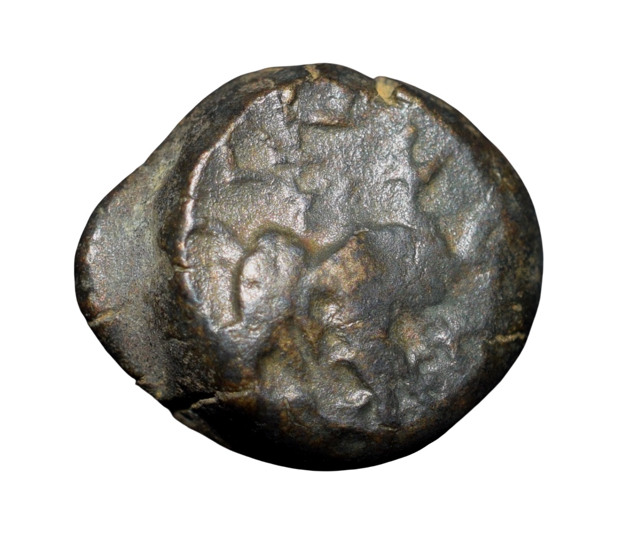 Mitra Dynasty, Balamitra?, (2nd Cen. BC), Copper Unit, Central India Region, Obv: Lion to Right, Brahmi Inscriptions top Rano Bala(mitasa), Rev: Traces of animal motif, 3.60 Gms, About Extremely Fine, Extremely Rare.