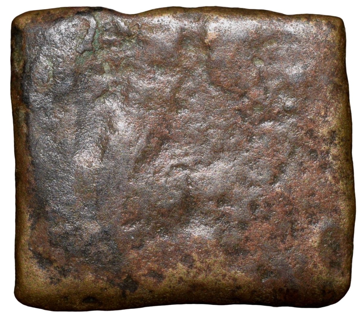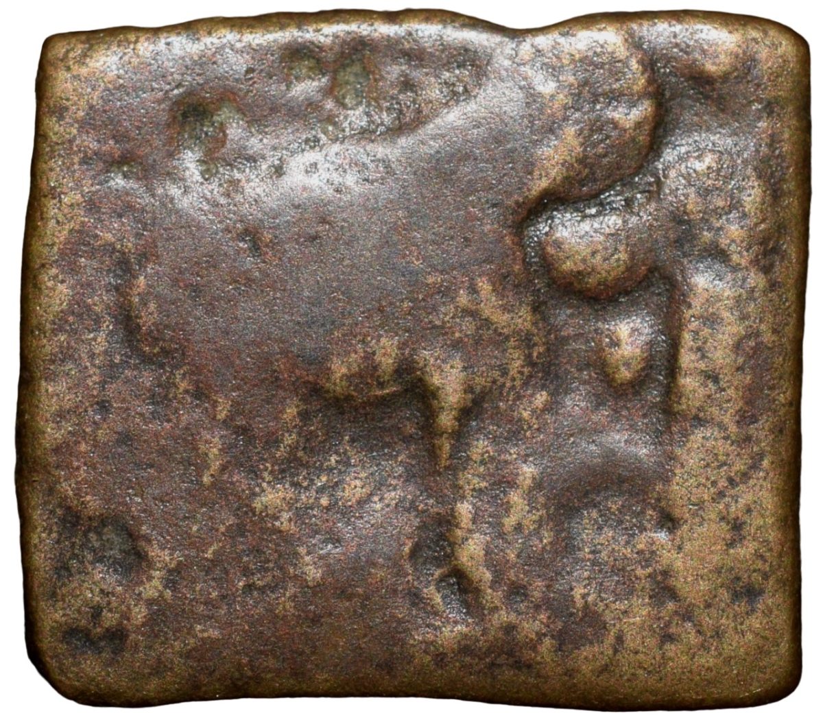 Maghas of Malhar, (2nd – 3rd Cen. AD), Copper Unit, Obv: Elephant facing right with trunk dropped down, Rev: Traces of Deity figure, 2.78 Gms, 14.70 x 13.40 mm, About Fine, Very Rare.