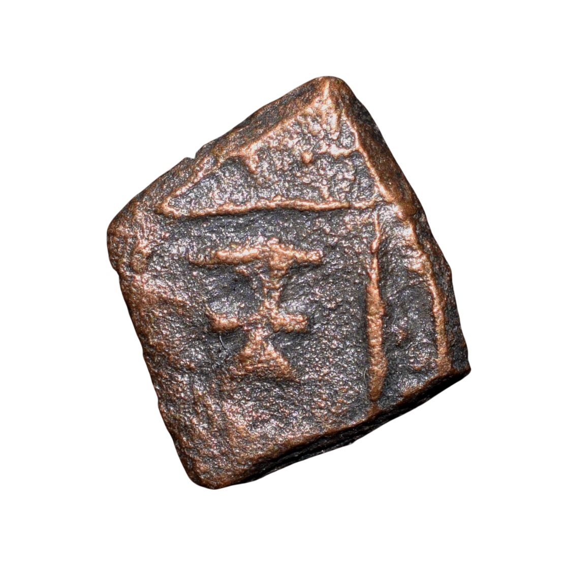 Copper Coin of Maharathis of Andhra(2nd Cen. BC) with Triangular Headed Symbol within square/Nandywarta Rare