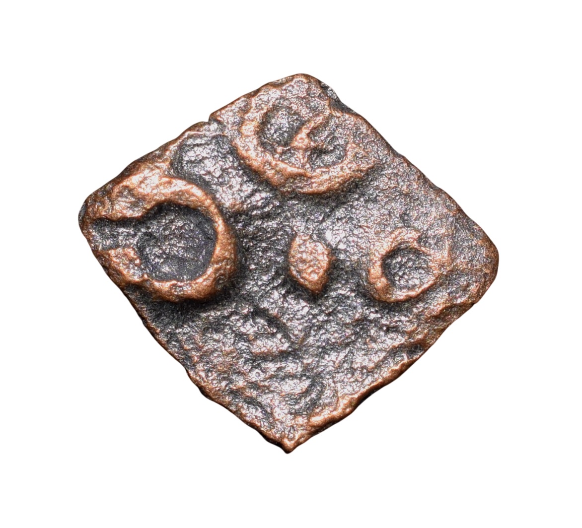 Maharathi’s of Andhra, (2nd Cen. BC), Copper Unit, Obv: Triangular Headed Symbol within double line square, Rev: Nandywarta, 0.44 Gms, Extremely Fine, Rare.