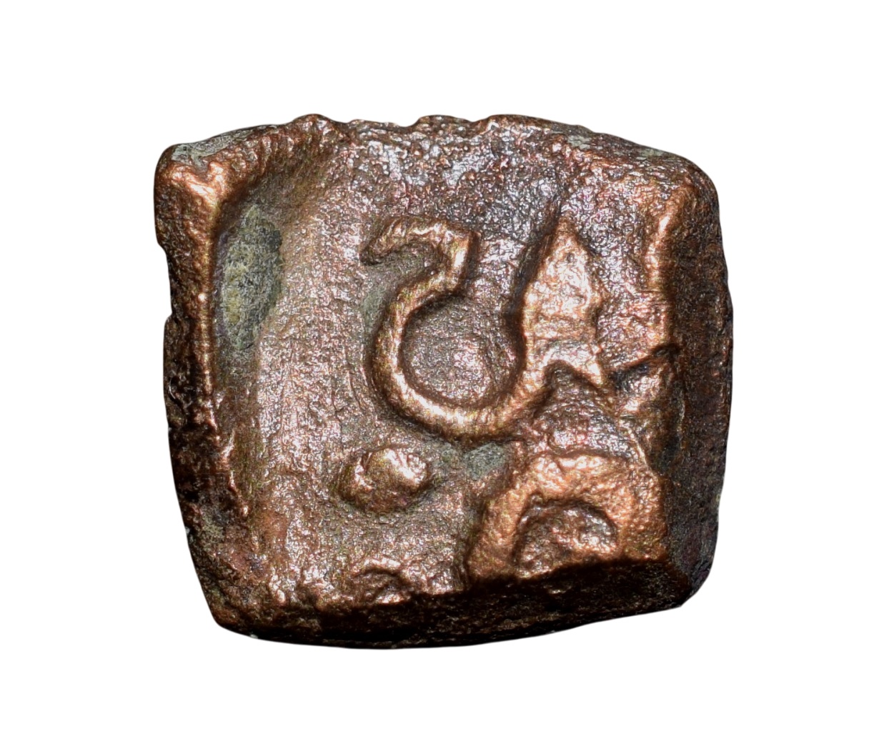 Maharathi’s of Andhra, (2nd Cen. BC), Copper Unit, Obv: Triangular Headed Symbol within double line square, Rev: Nandywarta, 0.78 Gms, Extremely Fine, Rare.