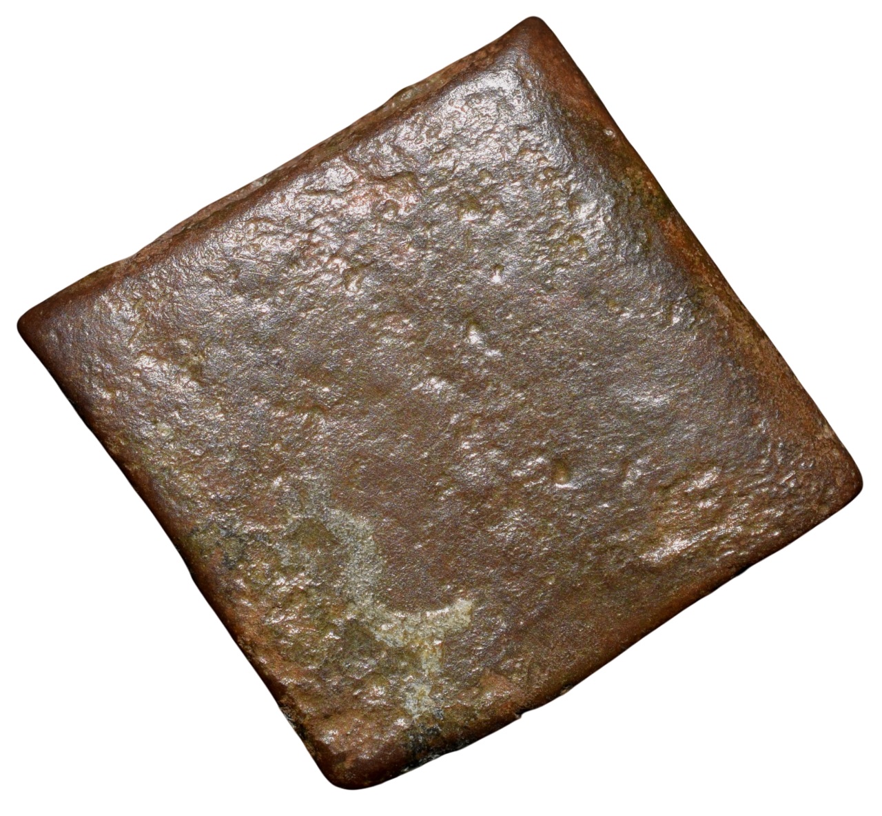 Pre-Satavahana, (2nd – 1st Cen. BC), Copper Unit, Nanded Region, Obv: Faintly visible Animal (Bull) walking right, Rev: Uniface, 4.16 Gms, About Fine, Rare.