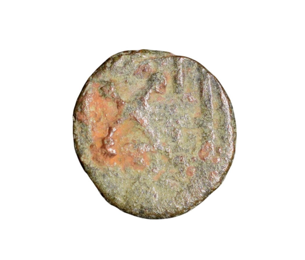 Gupta Dynasty, Ramagupta(AD 375-376), Copper Unit, Obv: a seated garuda with wings spread, Rev: bramhi legends ‘ramagu(patasya)’, sun and moon above brahmi legend, 0.20 Gms, Very Fine, Rare.