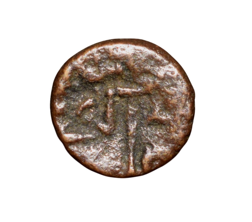 Gupta Dynasty, Ramagupta(AD 375-376), Copper Unit, Obv: A seated garuda facing, Rev: bramhi legends ‘(rama)gupatasya’, 0.32 Gms, About Extremely Fine, Rare.