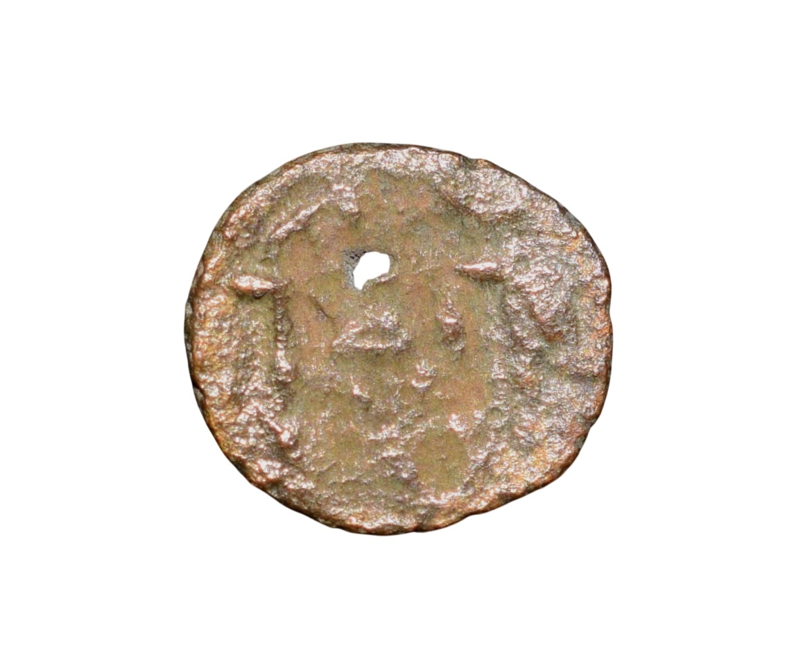 Gupta Dynasty, Ramagupta (AD 375-376), Copper Unit, Obv: a seated garuda with wings spread facing front, Rev: bramhi legends ‘Ramagup(tasya)’, 0.14 Gms, Very Fine.