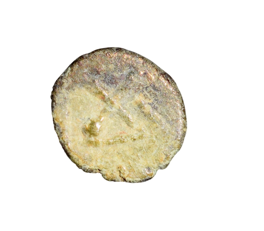 Gupta Dynasty, Ramagupta (AD 375-376), Copper Unit, Obv: Traces of a seated garuda, Rev: bramhi legends ‘Ramagu’, 0.20 Gms, Extremely Fine, Rare.