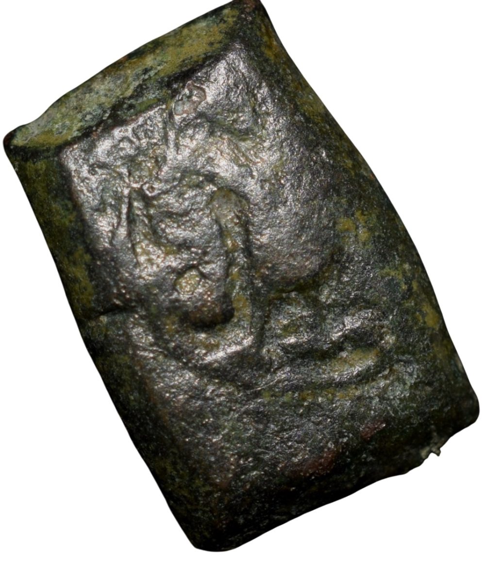 Rashatrakuta Dynasty, (7th Cen. AD), Copper Unit, Vidarbha Region, Obv: Garuda facing, Rev: Brahmi Inscription, 2.48 Gms, 12.00 x 8.20 mm, Very Fine, Extremely Rare.