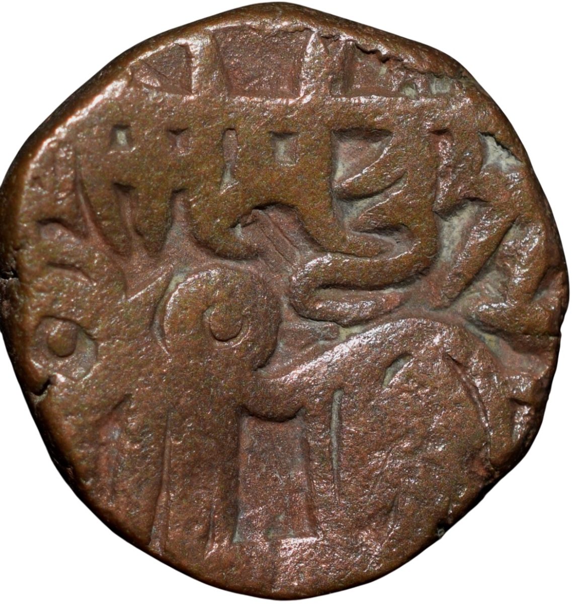 Copper Coin of Samanta Deva(AD850-1000) of Ohinda Dynasty Bull/Horseman Type
