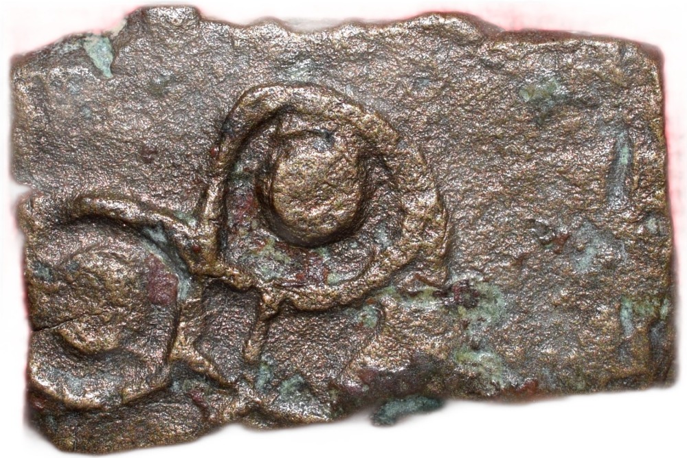Satavahana Dynasty, Satakarni I, (1st Cen. BC), Copper Unit, Western Maharashatra, Obv: Tree in Railing, Brahmi legends around, Rev: double orbed Ujjaini Symbol, 1.95 Gms, 16.88 x 11.40 mm, About Very Fine, Rare.
