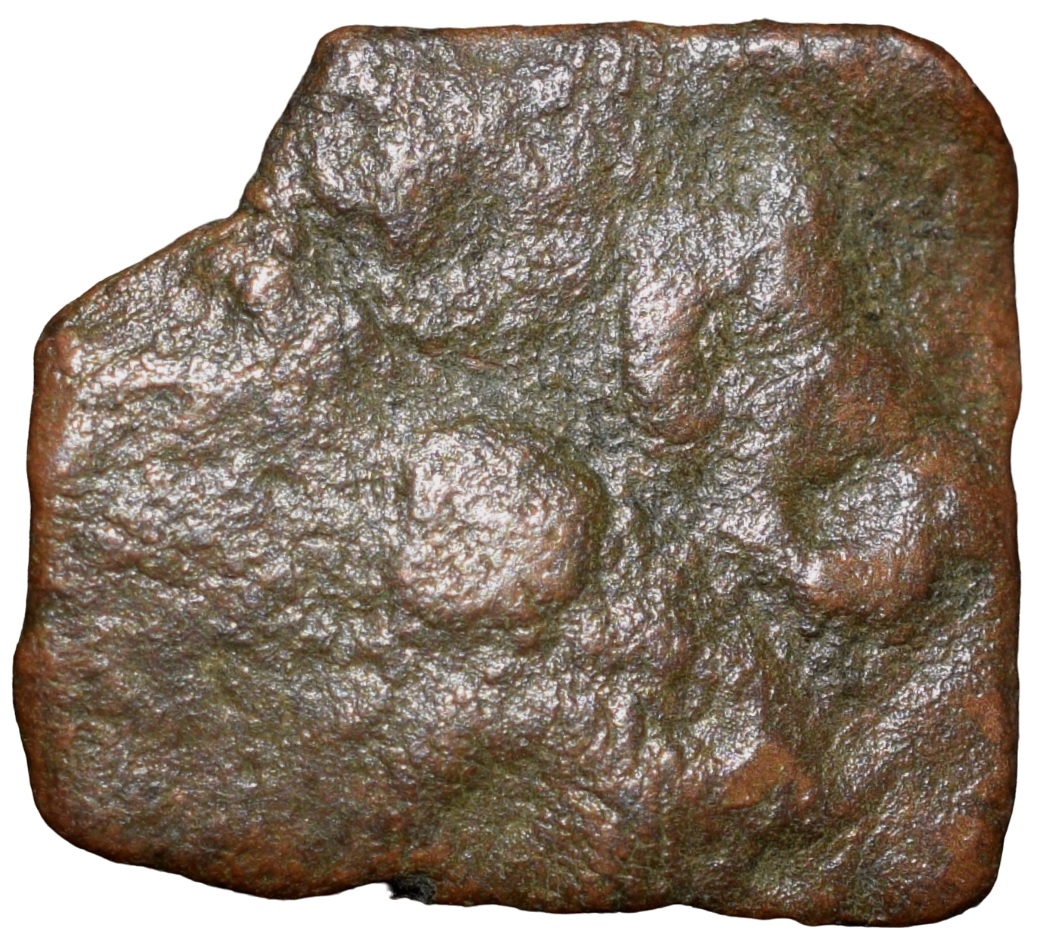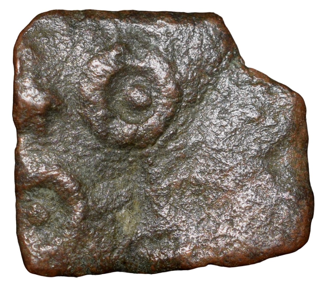 Satavahana Dynasty(1st Cen. BC), Copper Unit, Vidarbha(Yavatmal) Region, Obv: ‘Nandyawarta’ symbol (four Nandipadas around a central circle/Dot), Rev: Ujjaini symbol, 0.72 Gms, 9.85 x 8.97 mm, About Fine.