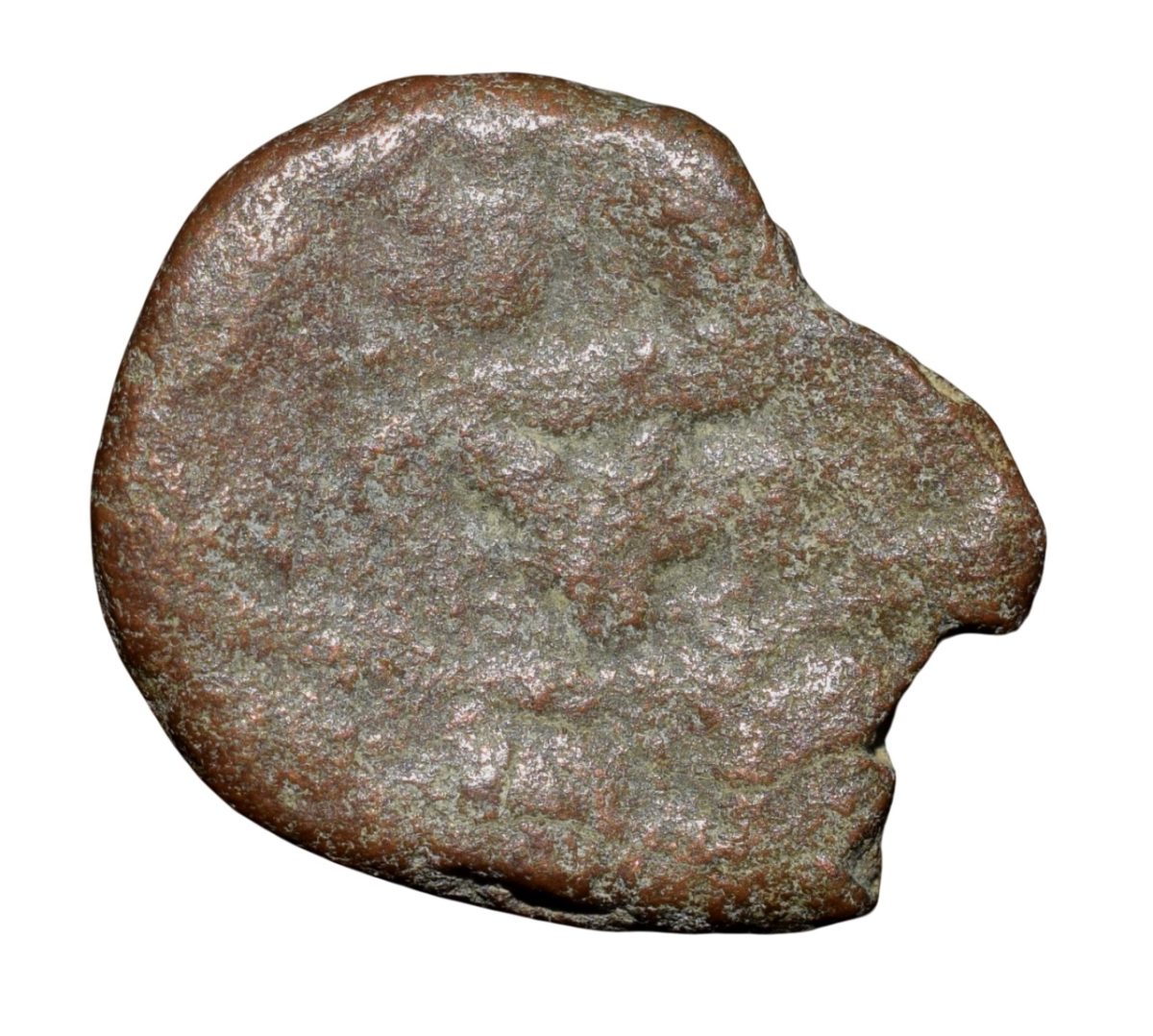 Ujjaini Region, (2nd Cen. BC), Copper Round Punch-Marked Unit, Obv: Punches showing Tree in Railing, Sun & Mahakal – (the deadly Form of Lord Shiva as a God of Death) holding a staff (Danda) and a water-pot (Kamandalu), Rev: Traces of Symbols Ujjaini, pully/bing, 5.50 Gms, 13.24 mm, Very Fine, Rare.