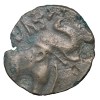 Kushan Dynasty, King Vasudev (AD 190-230), Copper fractional Unit, Taxila Series, Obv: King standing facing holding Trident in left hand, and right hand lowered to an alter, Rev: Lord Shiva & Nandi, 1.72 Gms, Very fine, Rare being fractional denomination.