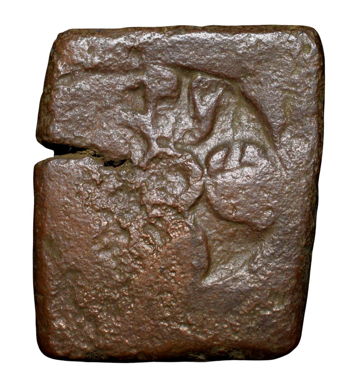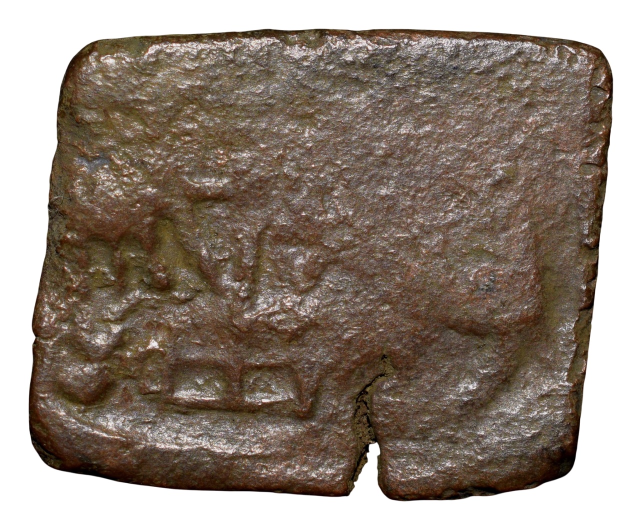 Copper Heavy Coin of Pre-Satavahana (2nd Cen. BC) with Tree Railing Flanked by Elephants/Nandywarta