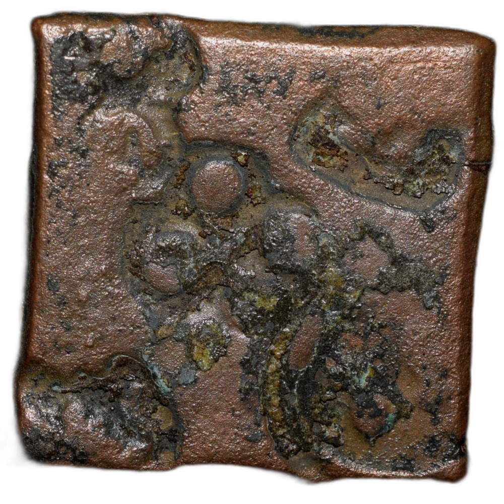 Copper Large Punch-Marked from Vidarbha Region (4th – 3rd Cen. BC) with Punches showing Ujjaini, Ele