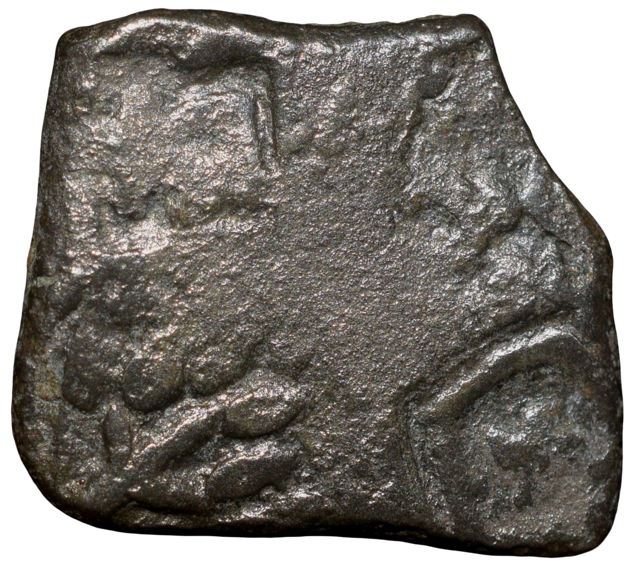Debased Silver Punch Marked of Vidarbha Region (3rd – 2nd Cen. BC) with Triangular Headed, 6-Arched, Tree Railing & Swastik within square