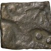 Lead Coin of Rudrasen III? of Western Kshatrapa(AD 348-78) Bull Facing right/3-Arched Hill