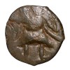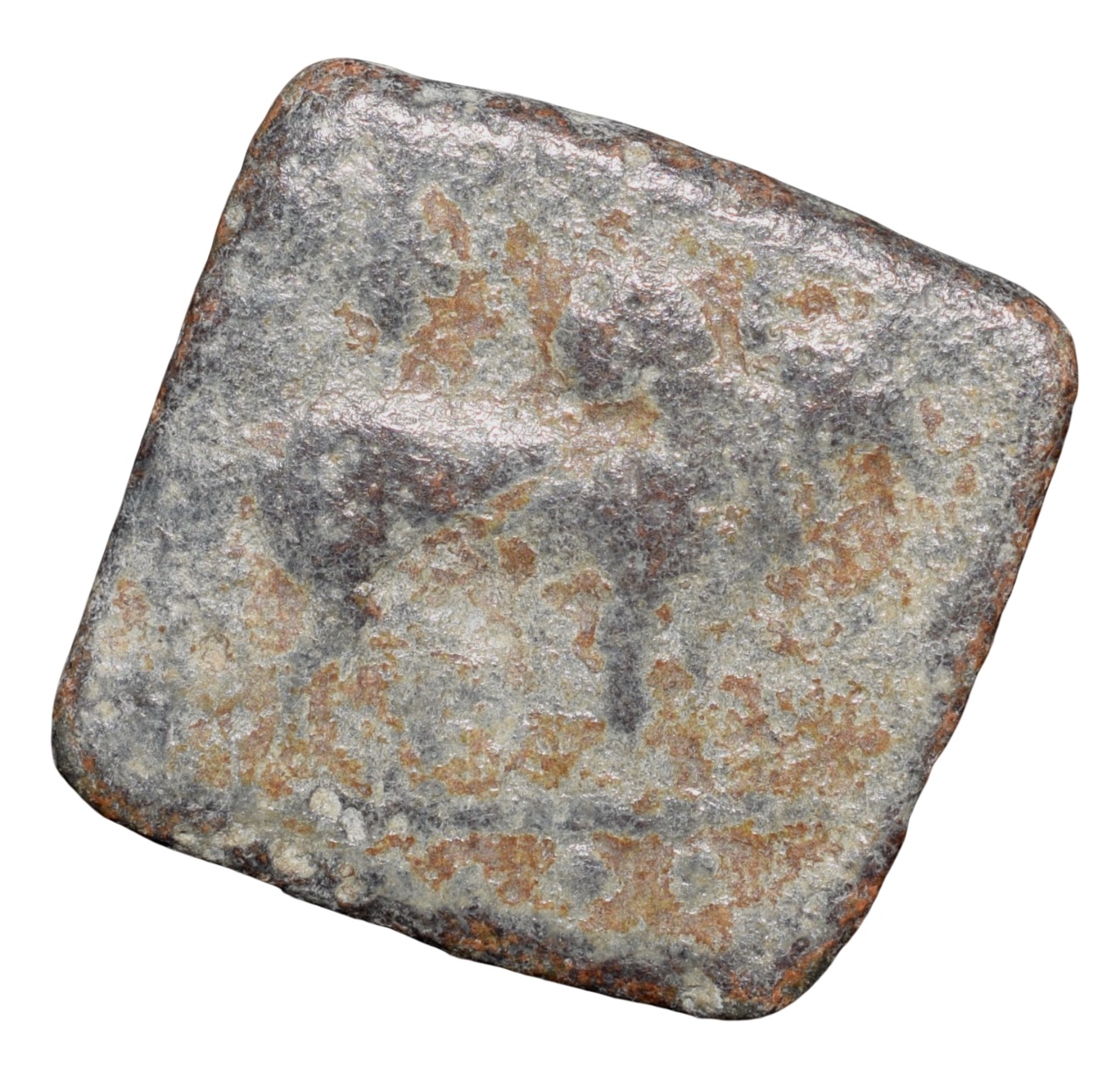 Lead Coin of Western Kshatrapa – Rudrasena III? (3rd Cen. AD) with Bull walking Right/3-Arched Hill Rare
