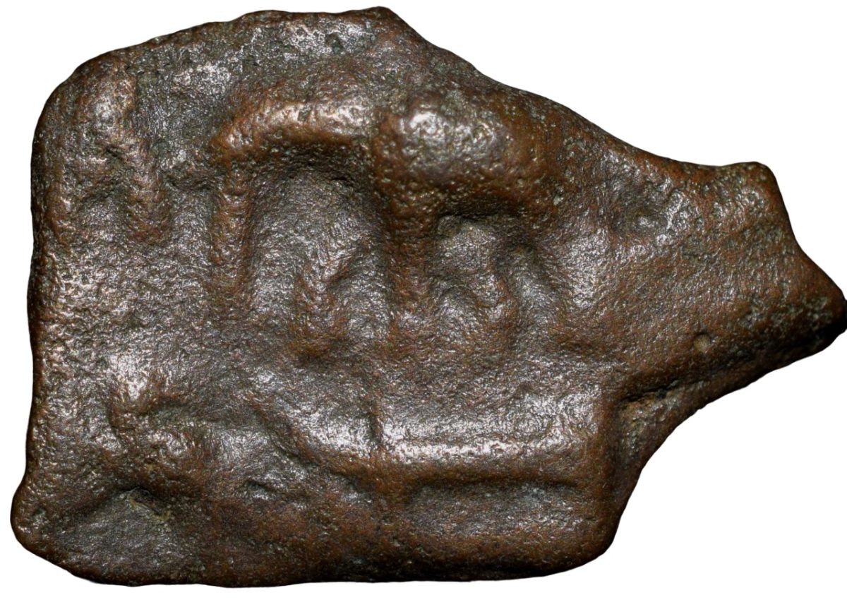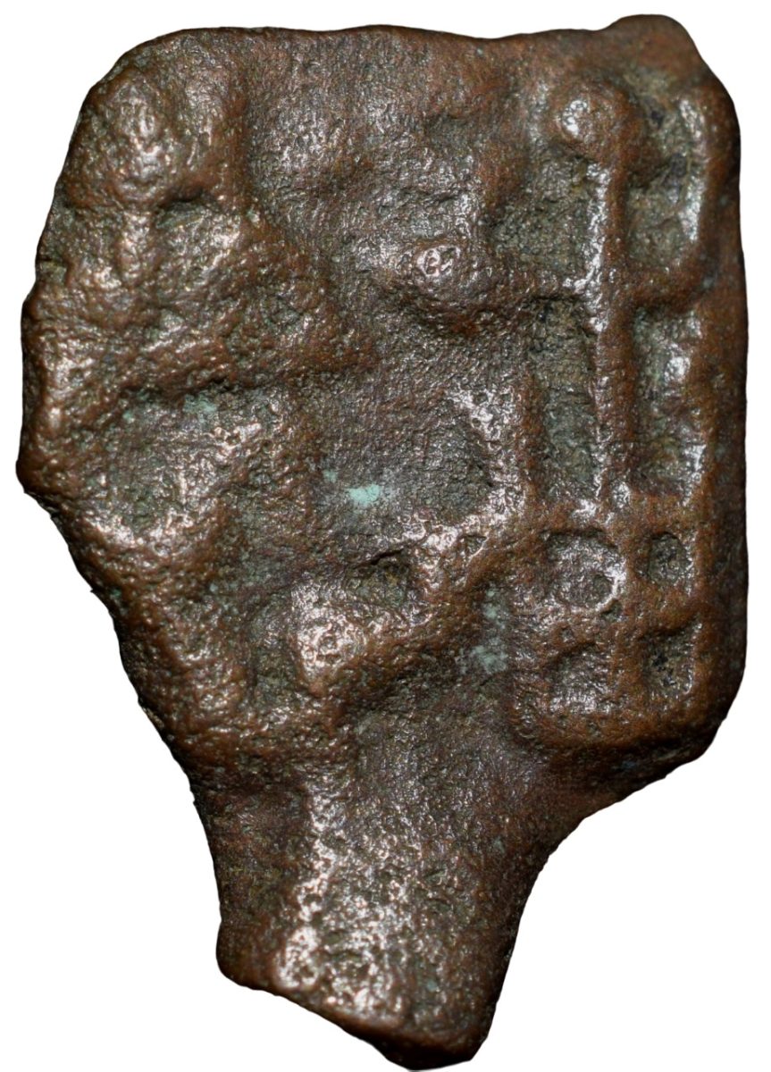 Odd Shaped Cast Copper Kakani of Sunga Kingdom Universal(2nd cen BC) Type Multiple symbols