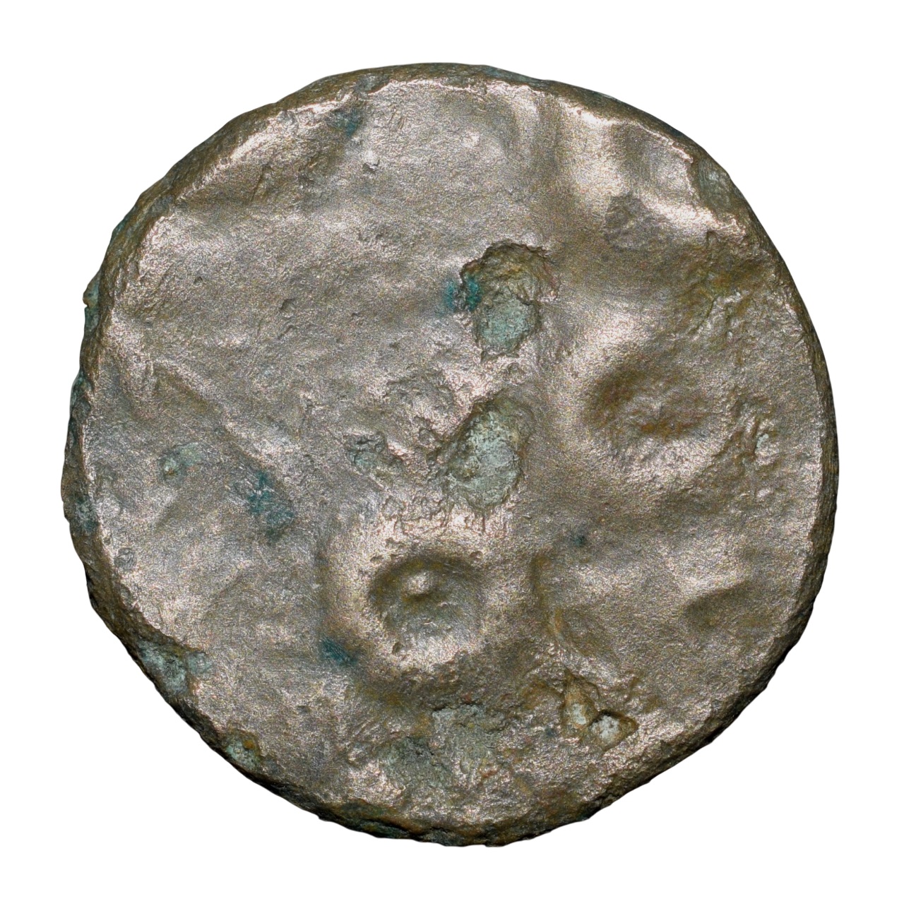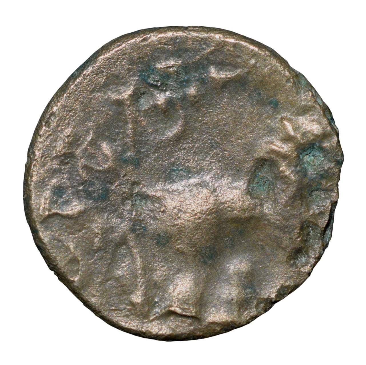 Satavahana Dynasty, Yajna Satakarni (1st Cen. BC), Potin Unit, Banavasi Region, Obv: Elephant facing right and bramhi legends top ‘Yajnasa’, Rev: ujjaini symbol, 2.30 Gms, About Very Fine, Rare.