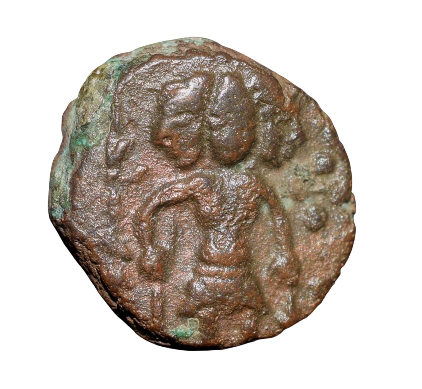 Ancient Ujjaini Region, (2nd Cen. BC), Copper Unit, Obv: 3-Headed Lord Shiva standing facing, Rev: Ujjaini symbol, 2.90 Gms, Extremely Fine, Rare.