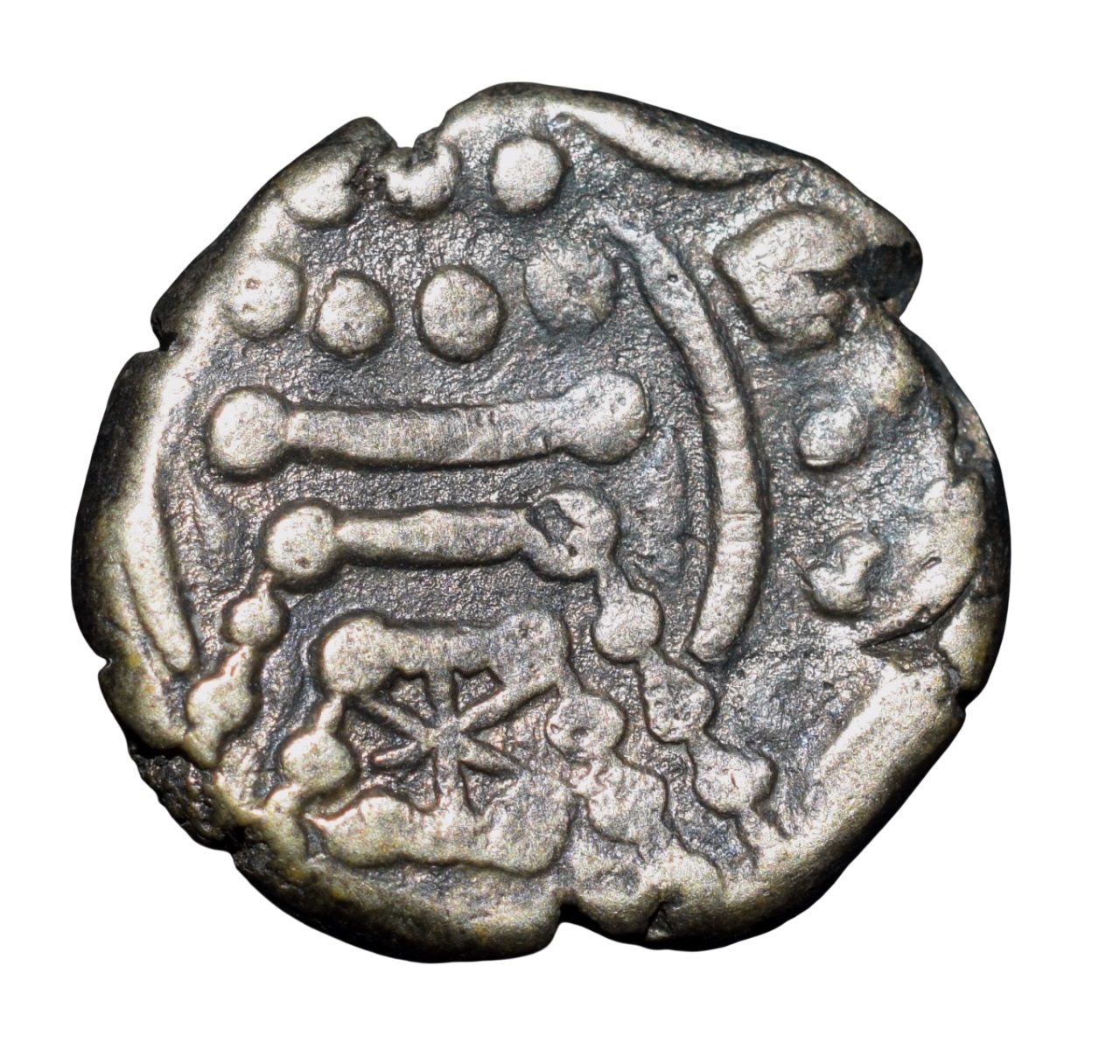 Silver Dracham of Chavadas of Gujrat(AD760-850) Profile Bust in Crude Form Deyell # 155