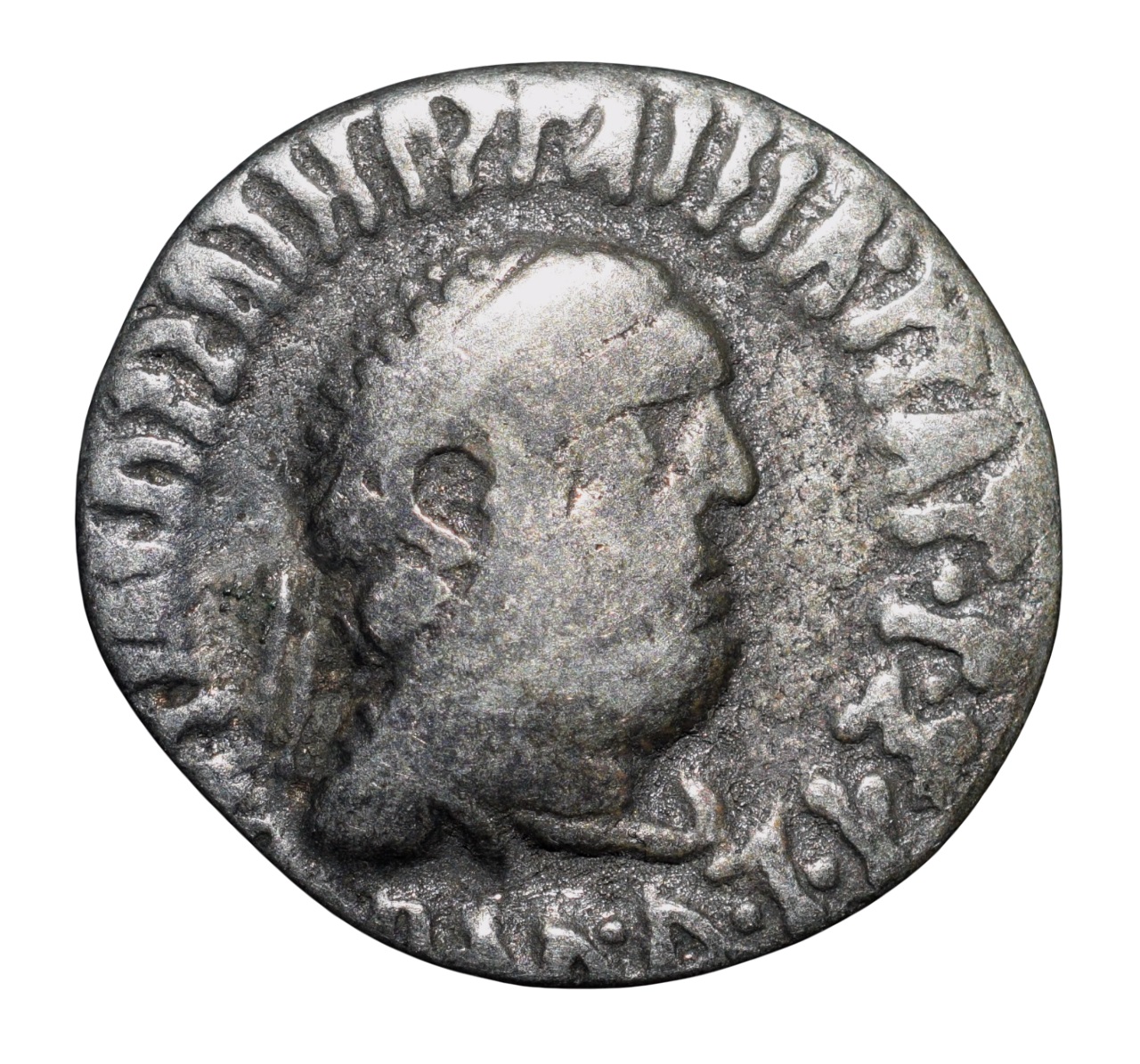 Indo-Greek, Apollodotus II, (BC 65 – 55), Silver Drachma, Obv: King Profile Bust facing Right, Rev: Deity in Centre, Inscriptions around, 2.18 Gms, 14.73 mm, Very Fine, Rare.