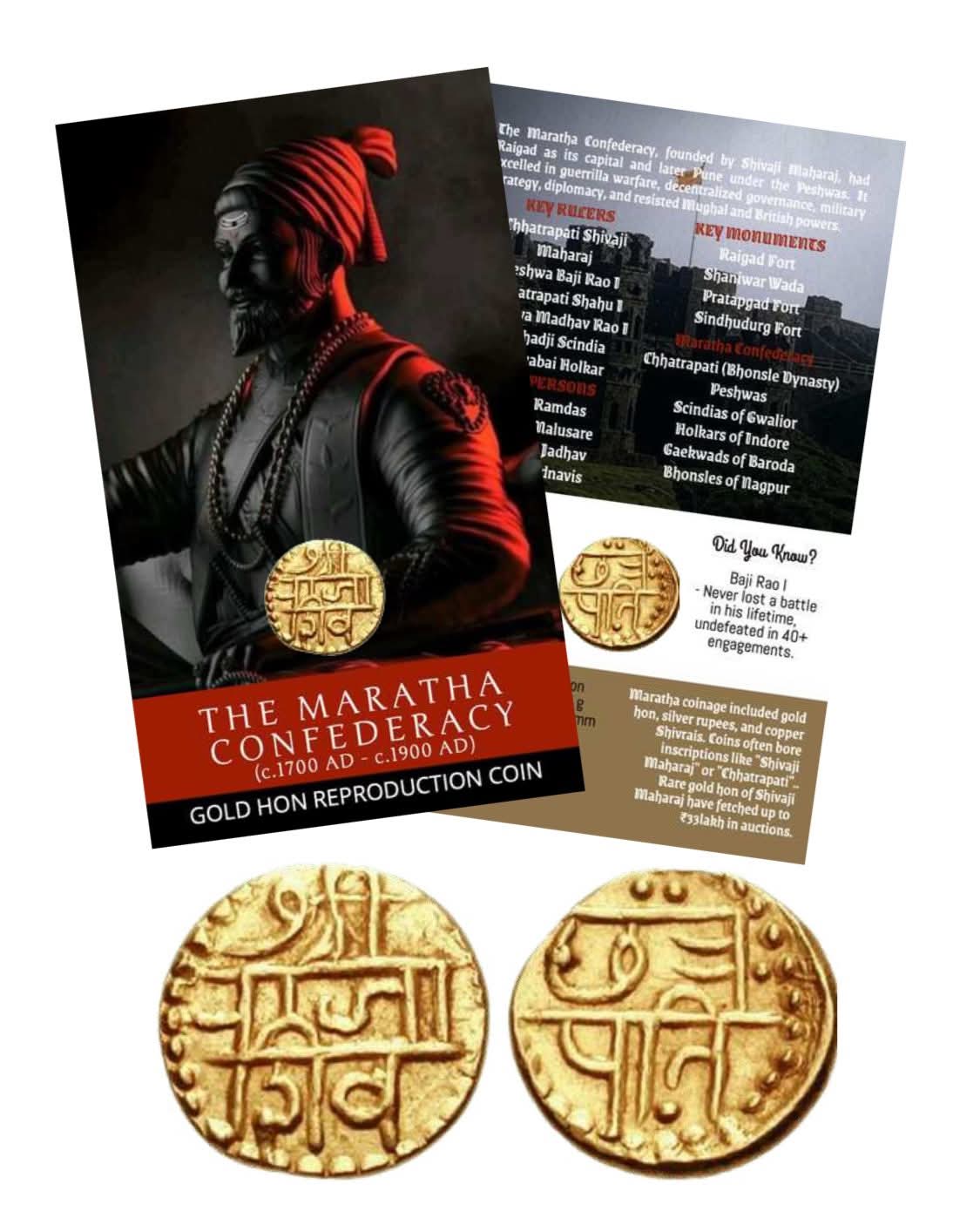• Based on original Hon coins featuring Modi script legends like “Shivaji” or “Chhatrapat”