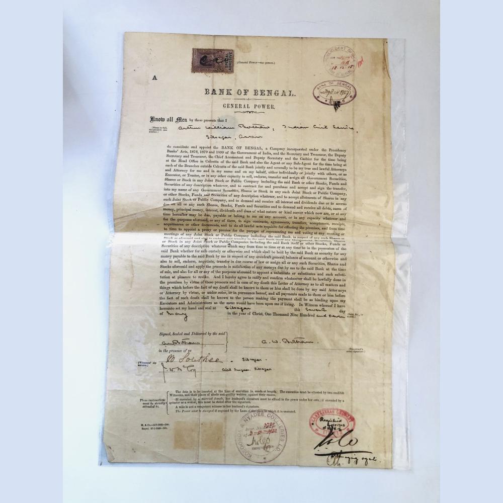 Step back in time with this exquisite Bank of Bengal original letter signed by A. W. Botham and dated back to the 1910s. This artifact holds a significant place in history, showcasing a piece of economic heritage from a bygone era. As part of the art of banknote collection, this rare find is a testament to the evolution of currency over centuries.