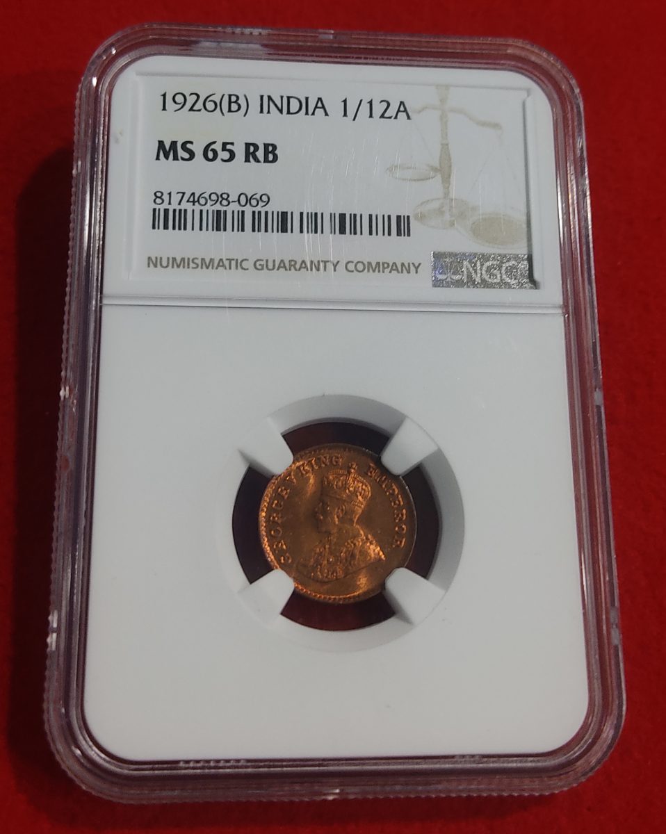 1/12 ANNA GEORGE V 1926 BOMBAY MINT NGC HIGH GRAD MS 65 RB