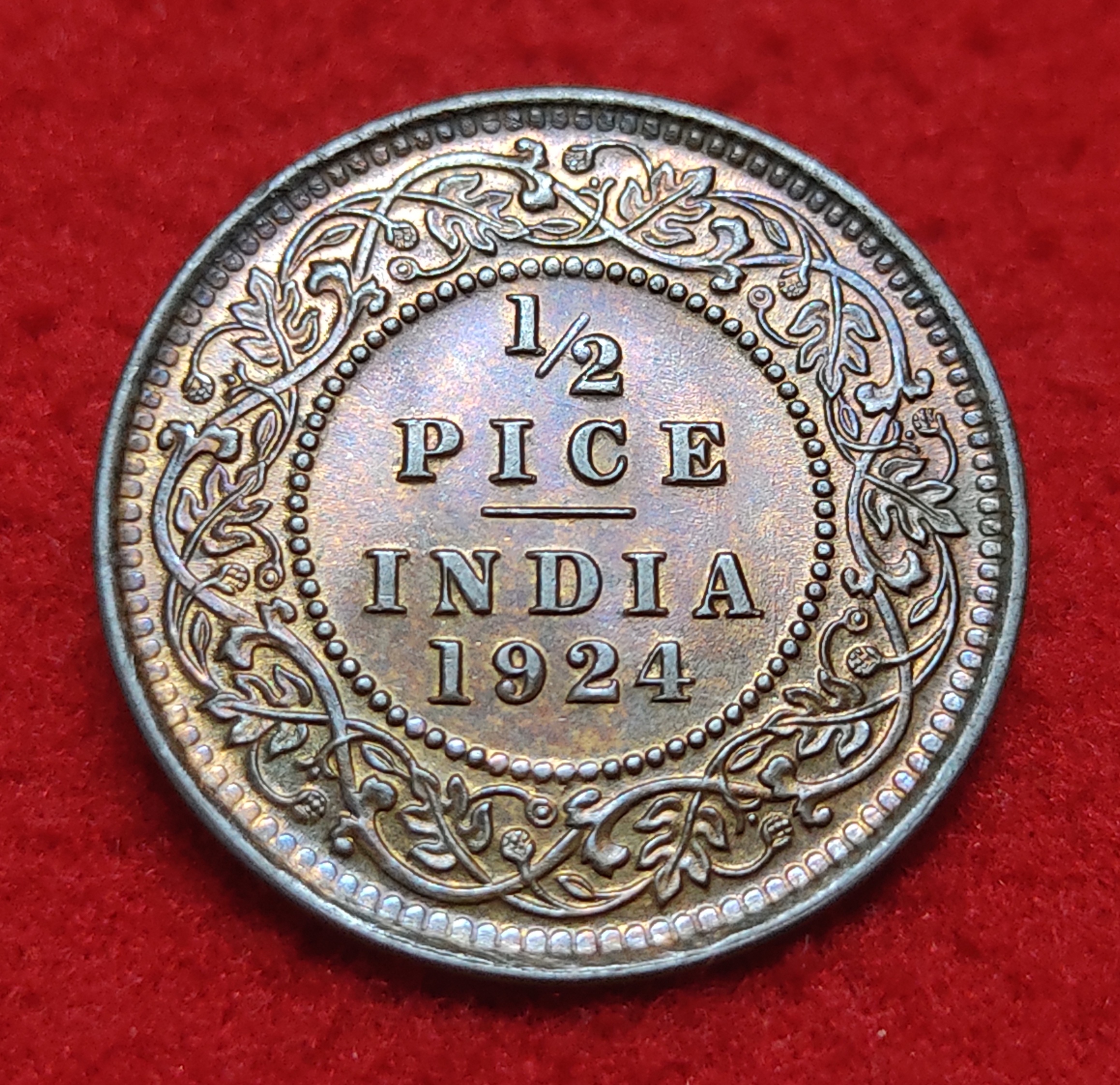 Step back in time with this remarkable 1/2 PICE coin from the reign of George V, minted in 1924 at Calcutta Mint. Crafted in uncirculated condition, this coin bears the historical significance of British colonial rule in India. The coin features a portrait of King George V on the obverse, exuding regal charm, while the reverse showcases intricate detailing. This collectible piece holds a special place in numismatic history, with its rarity adding allure for enthusiasts and collectors alike. Ideal for those passionate about historical artifacts, this coin offers a tangible connection to a bygone era of Indian numismatics. With its immaculate condition and historical value, this 1/2 PICE coin is a prized addition to any collection, encapsulating a piece of colonial India’s monetary heritage.