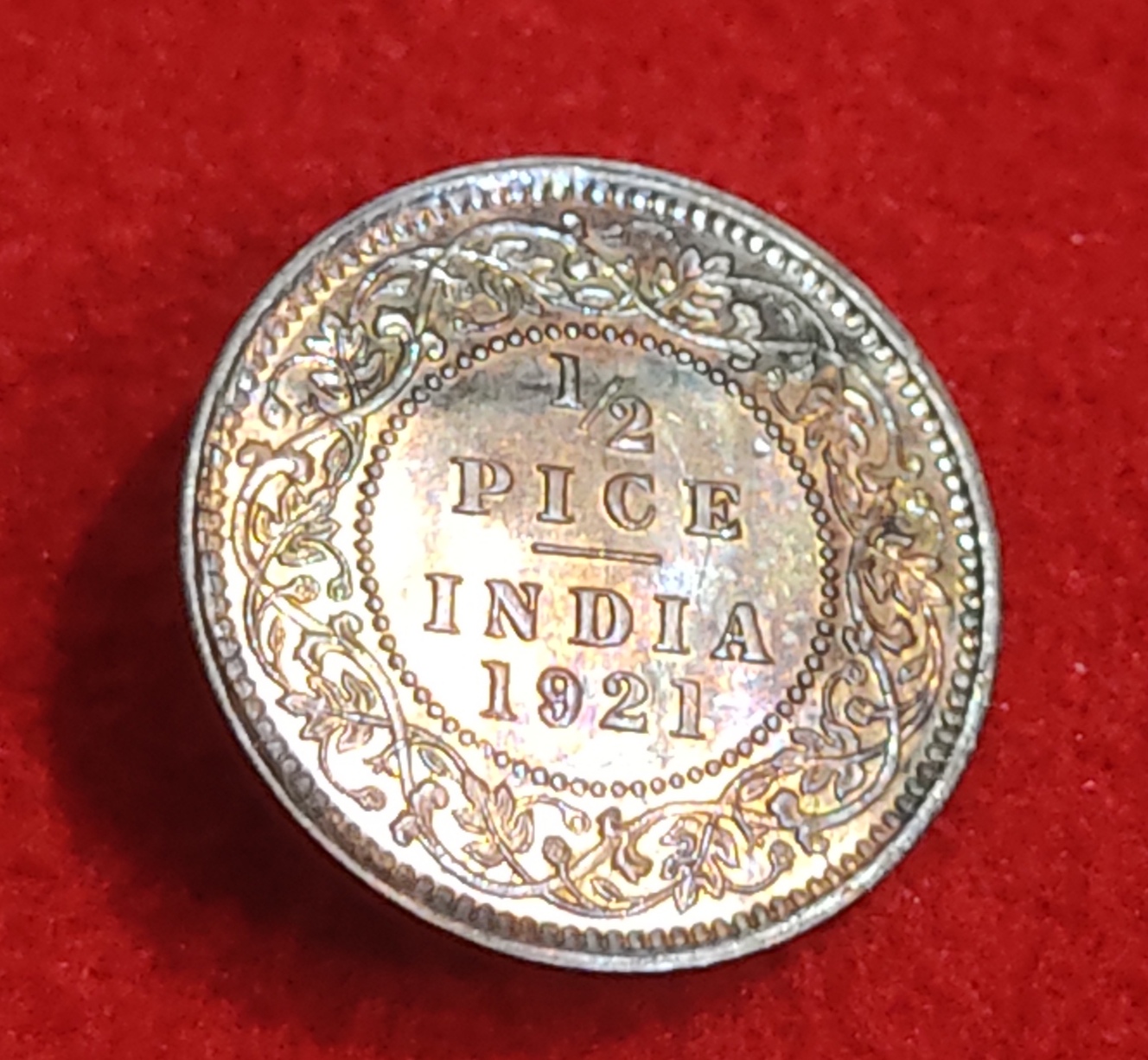 1/2 PICE GEORGE V YEAR 1921 CALCUTTA MINT GEM UNC CONDITION HIGH LUSTER COIN