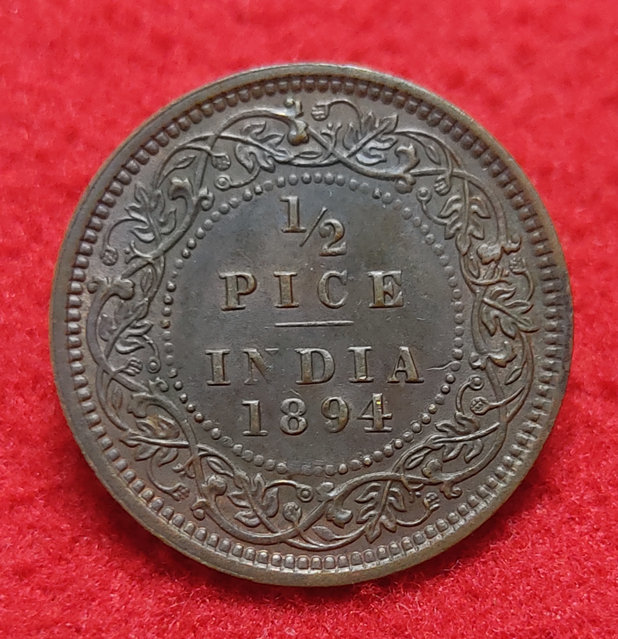 1/2 PICE VICTORIA EMPRESS 1894 CALCUTTA MINT BEAUTIFUL CONDITION