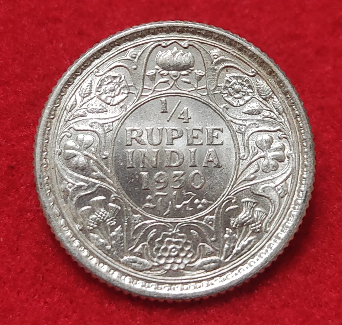 🌟 Rare 1930 Calcutta Mint 1/4 Rupee coin
