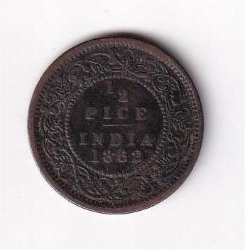 British India ½ Pice 1862 Victoria Rare Coin #I-227