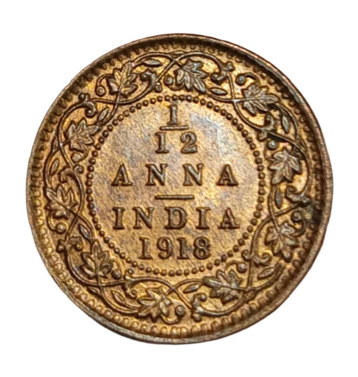 British India 1/12 ANNA Year 1918 King GEORGE-V in UNC Grade.