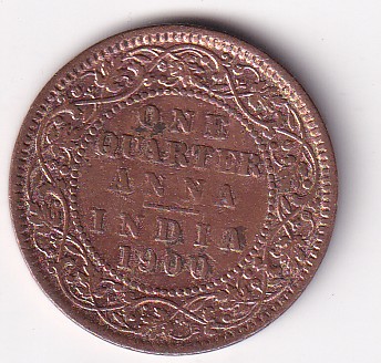 British India 1/4 Anna (1900) Victoria Rare Coin #Z-194