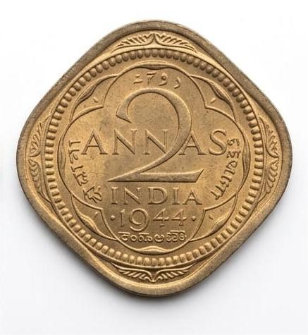 British India 2 Annas 1944 George VI Rare UNC Coin#Z-176