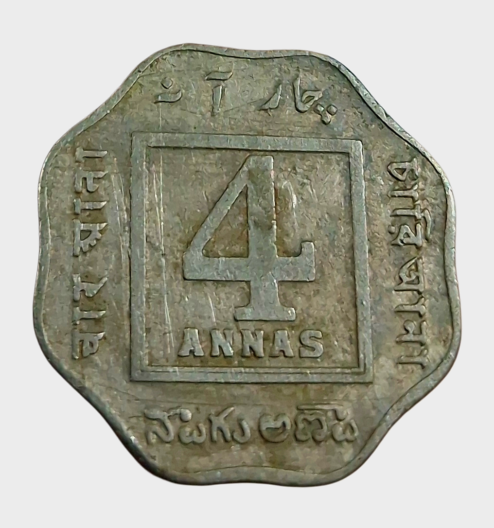 BRITISH INDIA 4 ANNAS Cu/Ni Year 1920 King GEORGE-V in Collectable Grade.