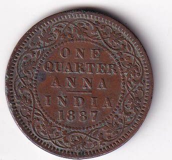 British India One Quarter Anna 1887 Victoria Rare Coin # I-285