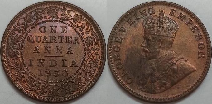 🌟 Rare 1936 One Quarter Anna coin from British India