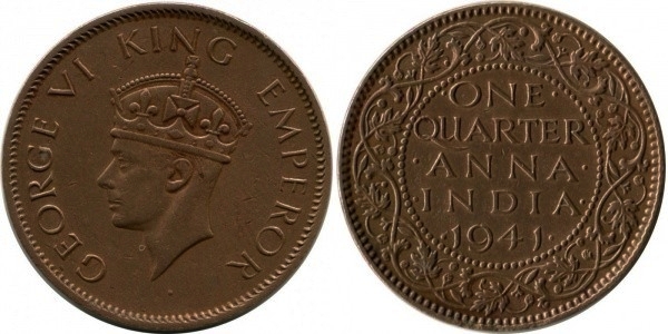 🏷️ Rare 1941 George VI One Quarter Anna coin