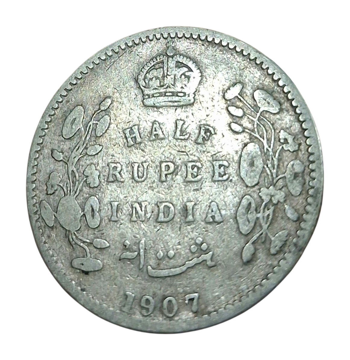British India Silver 1/2 HALF RUPEE Year 1907 King EDWARD-VII **SCARE** Collectable Grade.