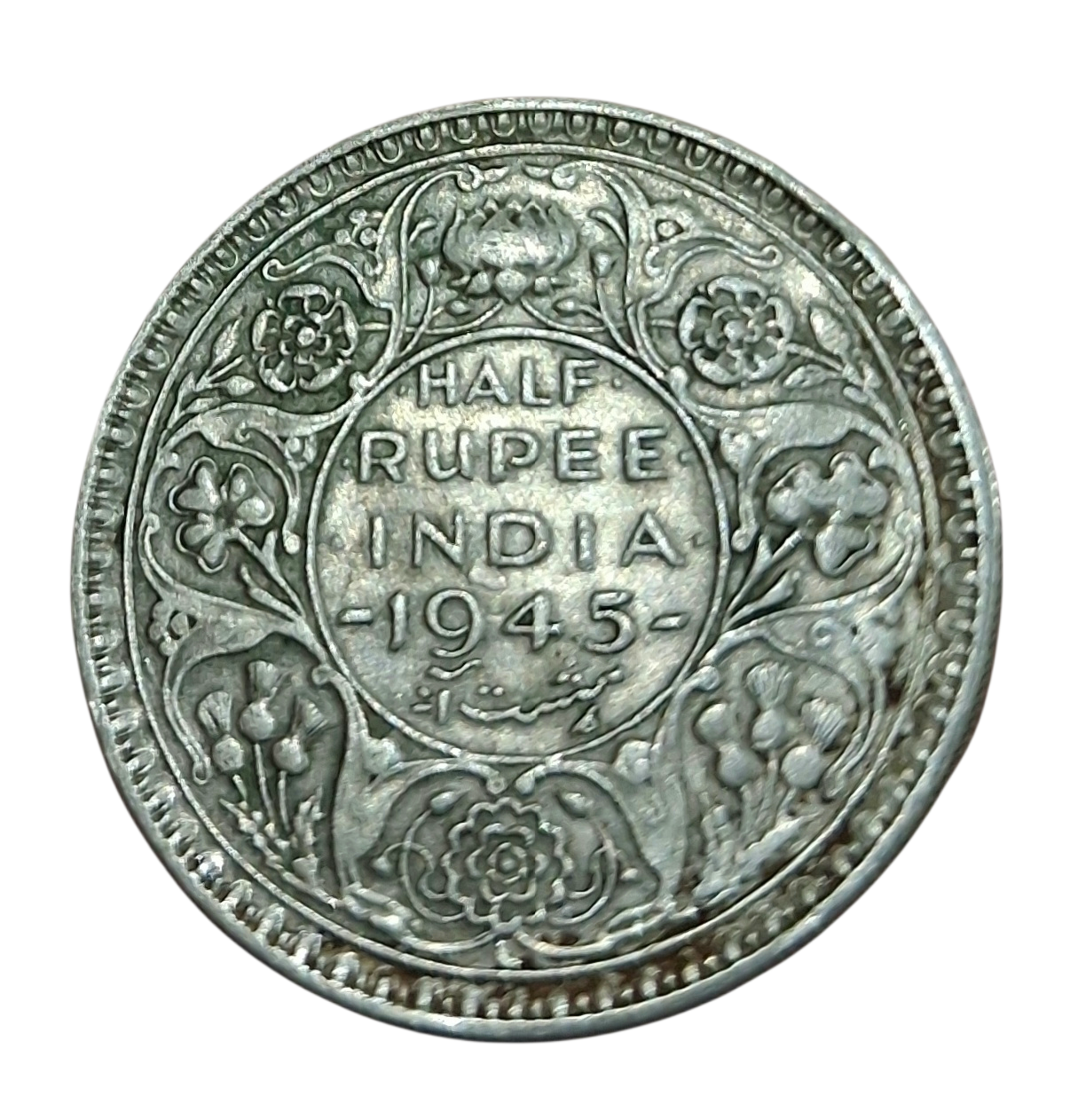 British India Silver 1/2 HALF RUPEE Year 1945 (L) LAHORE Mint King GEORGE-VI in Collectable Grade.