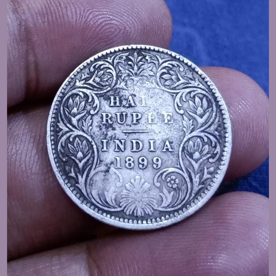 British India Silver 1/2 Rupee Year 1899 QUEEN VICTORIA EMPRESS in Collectable Grade with Detailings.